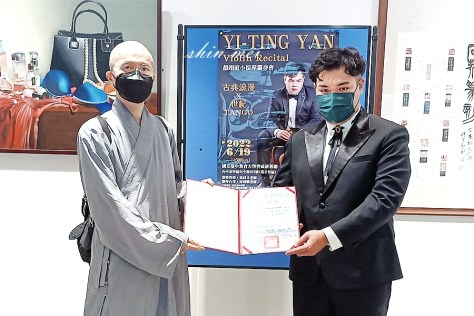 小提琴演奏家–顏翊庭,當天莊嚴的出席小提琴演出,也是首次在畢業獨奏音樂會,-顏翊庭老師,以年輕人的想法,懂得以手心向下,推動公益音樂會圓滿順利達成公益目標!