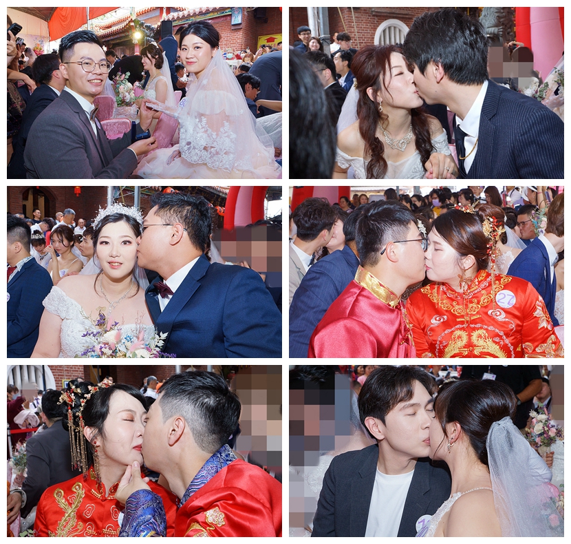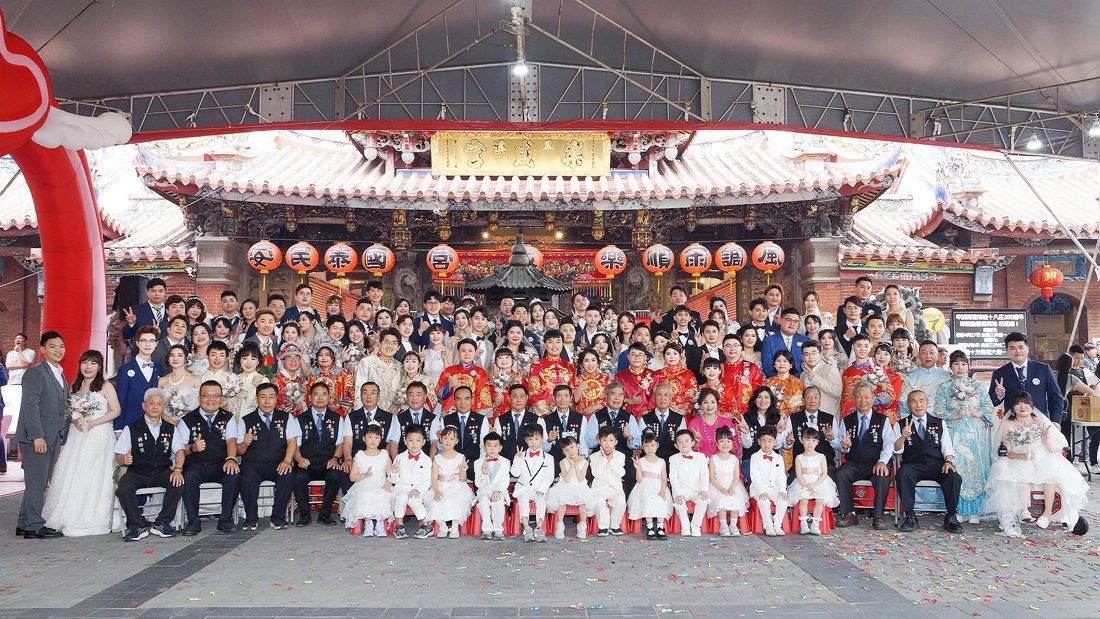2026年集團結婚承辦單位:貝思特婚紗提供婚禮當天白紗、捧花、化妝造型、12禮嫁妝外,更贈送男女真鑽對戒一對,主辦單位樂成宮更加碼贈送黃金999近5分的金鏟子(好孕到)墜鍊等,活動費用是19888元。今年特加入進場不同氛圍,由喜婆(川劇變臉 王小花)引領6對中西式男女小花童,迎花轎穿中西式白紗、中式秀禾服⋯等,並由主持人為他們分享愛情故事隆重熱鬧進場。